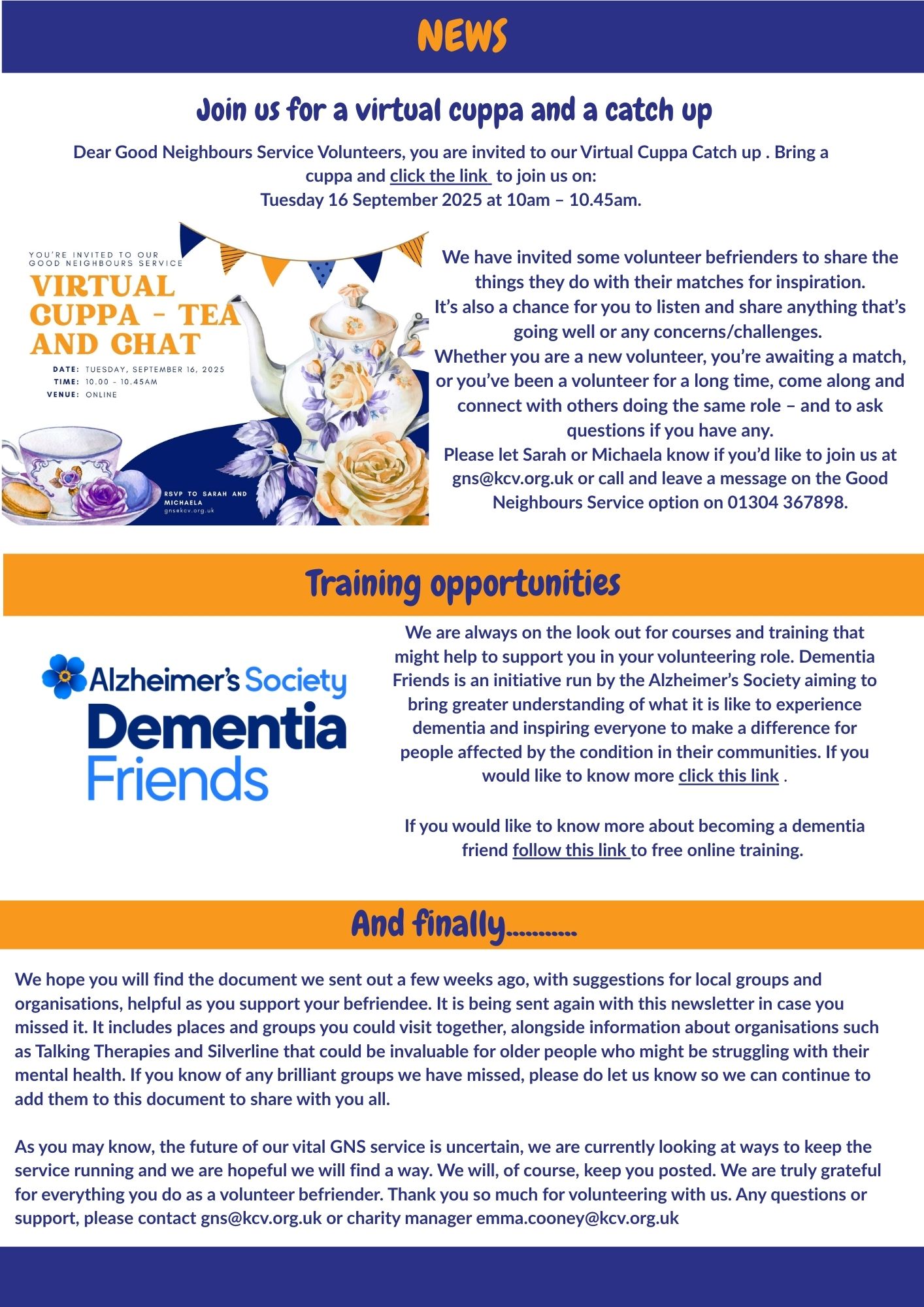 Click the orange link to read our Good Neighbours Service newsletter or view it below