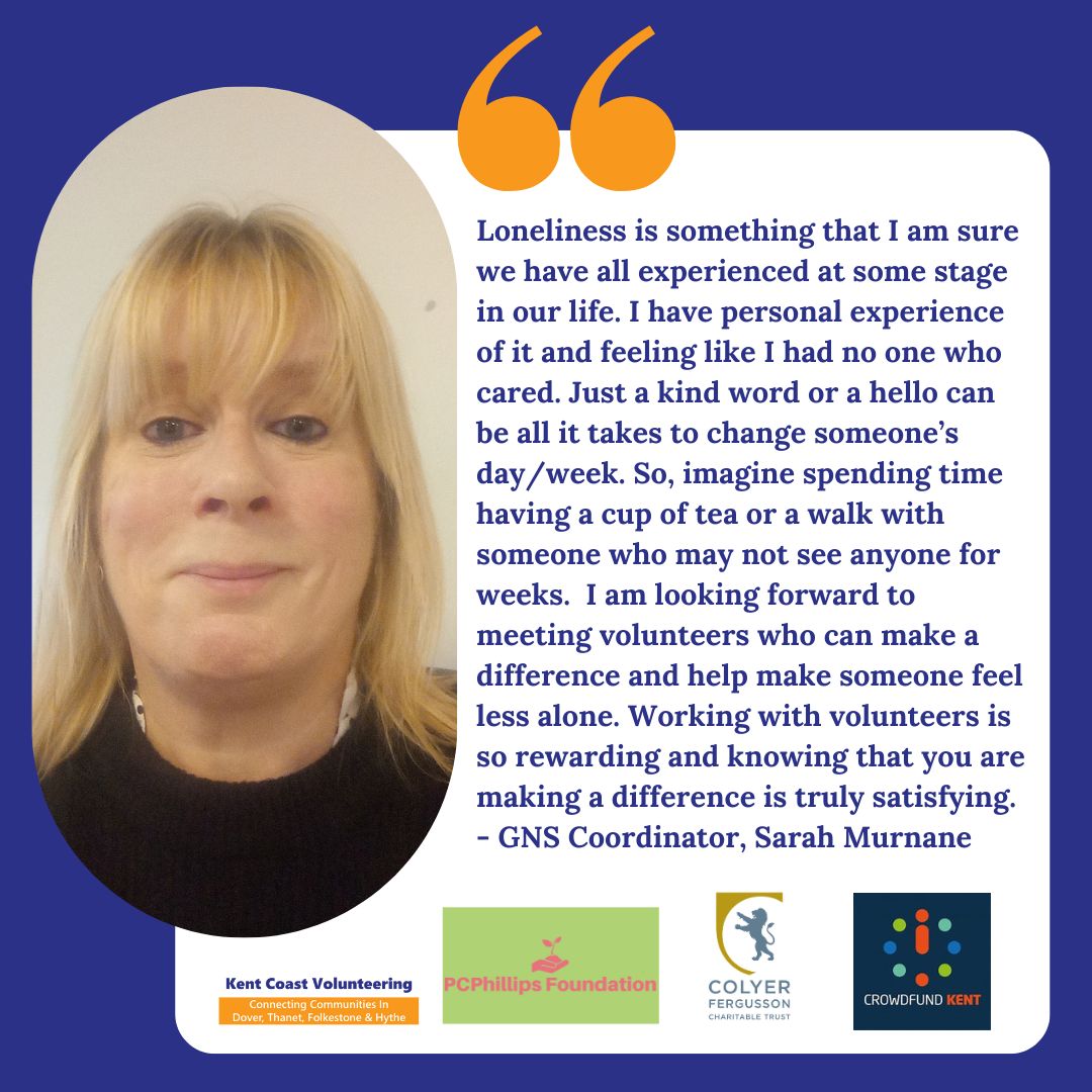 Kent Coast Volunteering is accredited by Befriending Networks, who say befriending reduces loneliness and social isolation by increasing connections and that the befriending relationship is nurturing, enriching, and trusting.