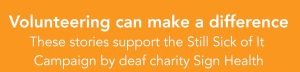Our Deaf volunteers have not only shared their stories — they’ve also become advocates for change. Agreeing for their stories being shared with SignHealth’s ‘Still Sick of it’ Campaign. Helping to raise awareness, support others, and encourage better Deaf inclusion in community settings.