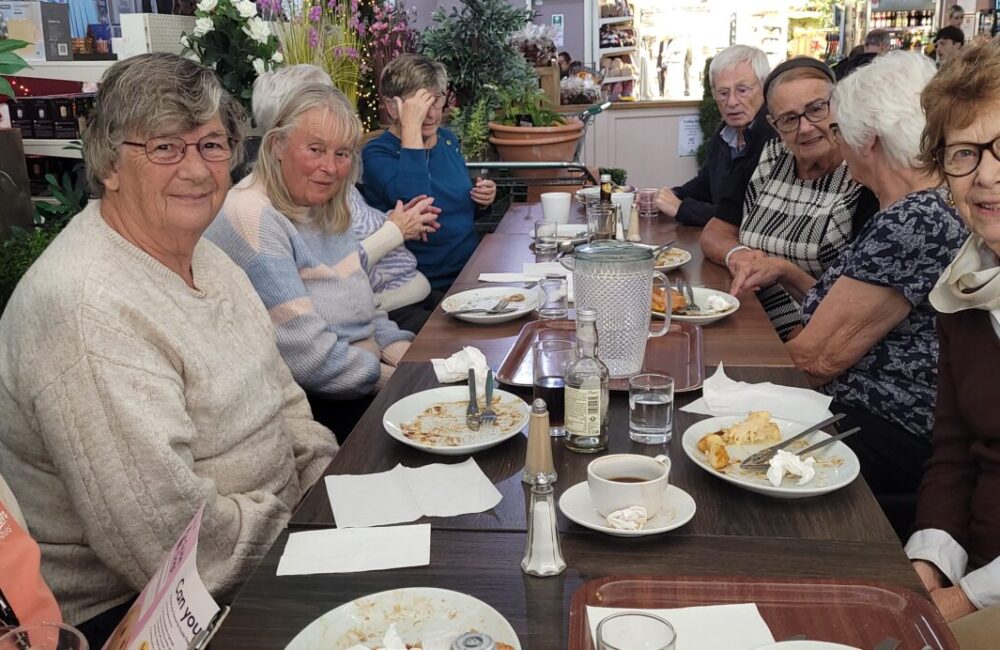 On the day, we arrive early and make sure the table and chairs are comfortable, set out with space around for walking aids and wheelchairs. Then we have a lovely lunch and plenty of chatter and a good catch up.
