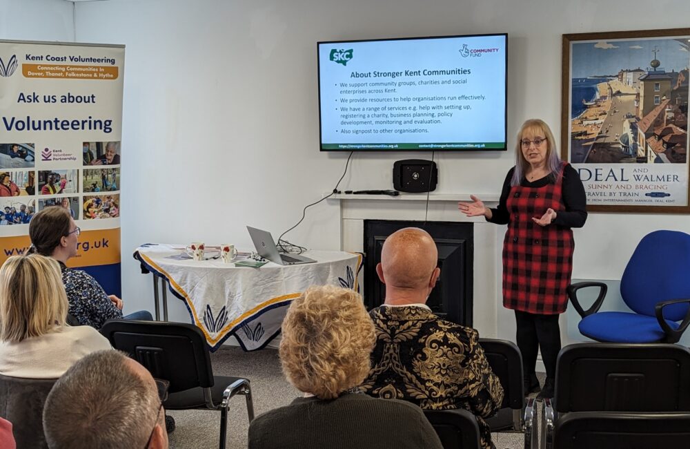 Our recent Network & Knowledge event in Deal was a useful and informative meet up. We were joined by Kerry Banks BEM, award winning fundraiser for Martha Trust and Breast Cancer Now who shared with us her secrets of volunteer recruitment and retention. Rebecca Bullivant gave a talk on the basic principles of DBS checking and how Kent Coast Volunteering can help you get your DBS checks set up. John Sutton, our Chair of trustees gave an overview on trusteeship and what it means to be a charity trustee and last, but not least, Sarah Thomas explained how Stronger Kent Communities can help community groups, charities and social enterprises find the help they need.