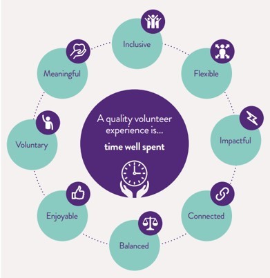 The NCVO Time Well Spent Survey looked at the question ‘What is a quality volunteering experience?’ and came to very similar conclusions (pictured below).