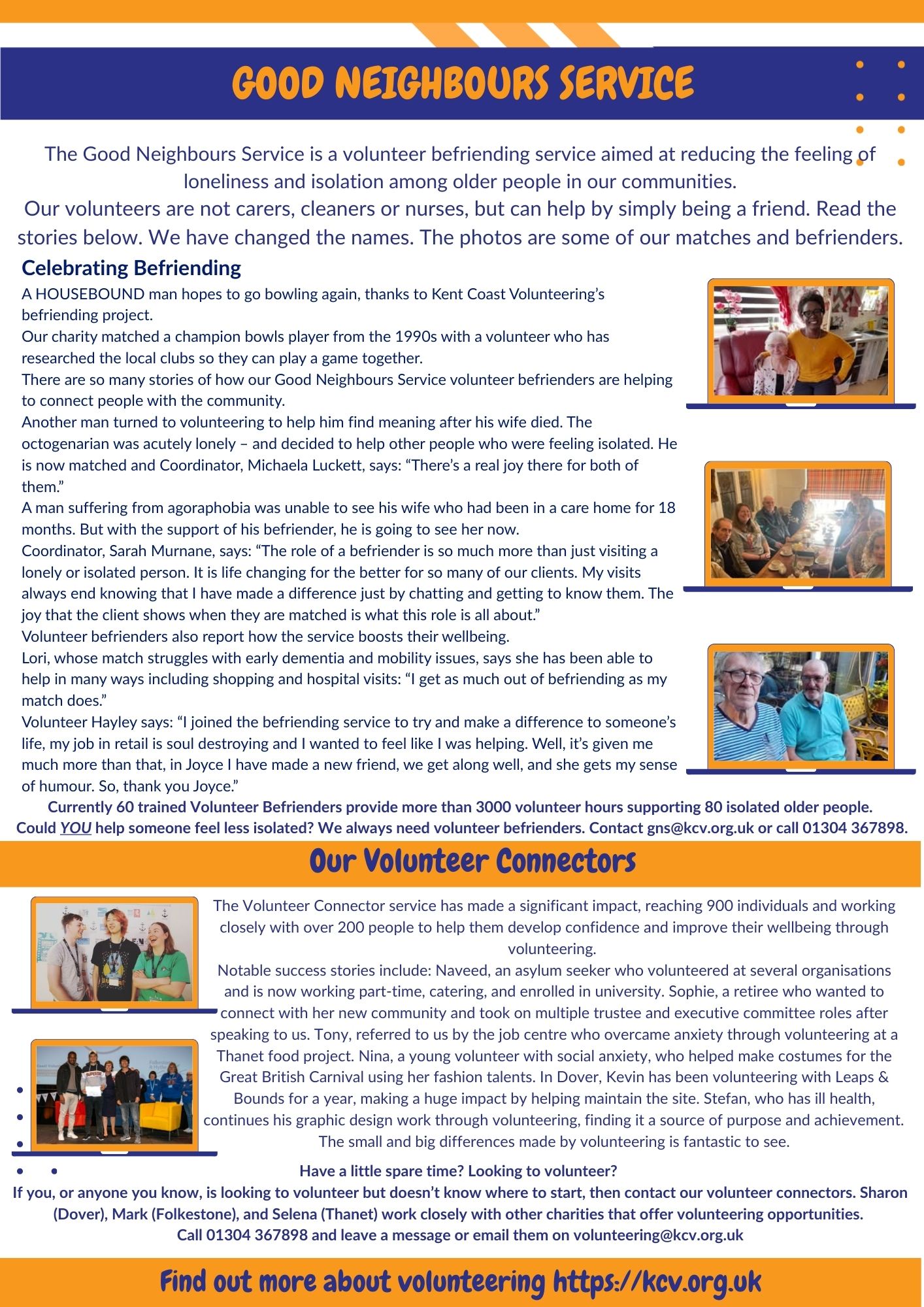 Our mission is to connect communities across East Kent through volunteering and community-led projects; supporting volunteers and volunteer involving organisations to meet needs and improve quality of life.